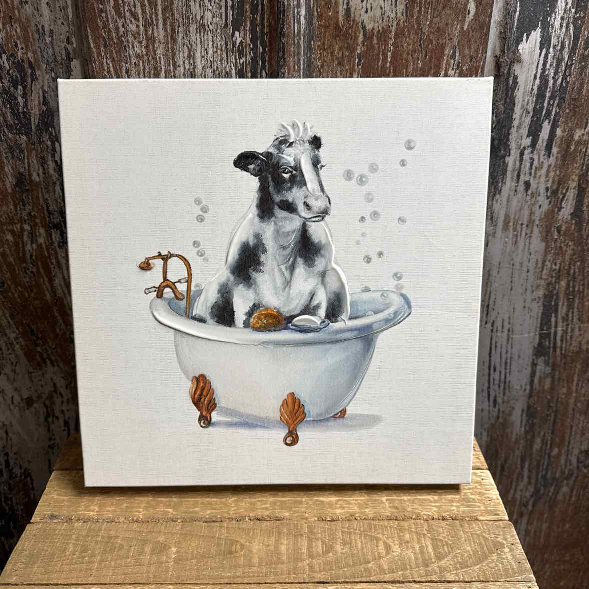 Cow in Bathtub. 1 ft. square canvas.